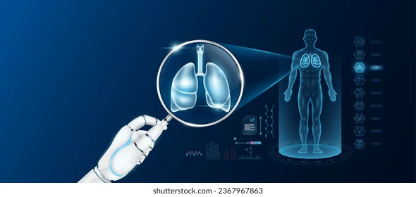 doctor-robot-hand-holding-magnifying-260nw-2367967863